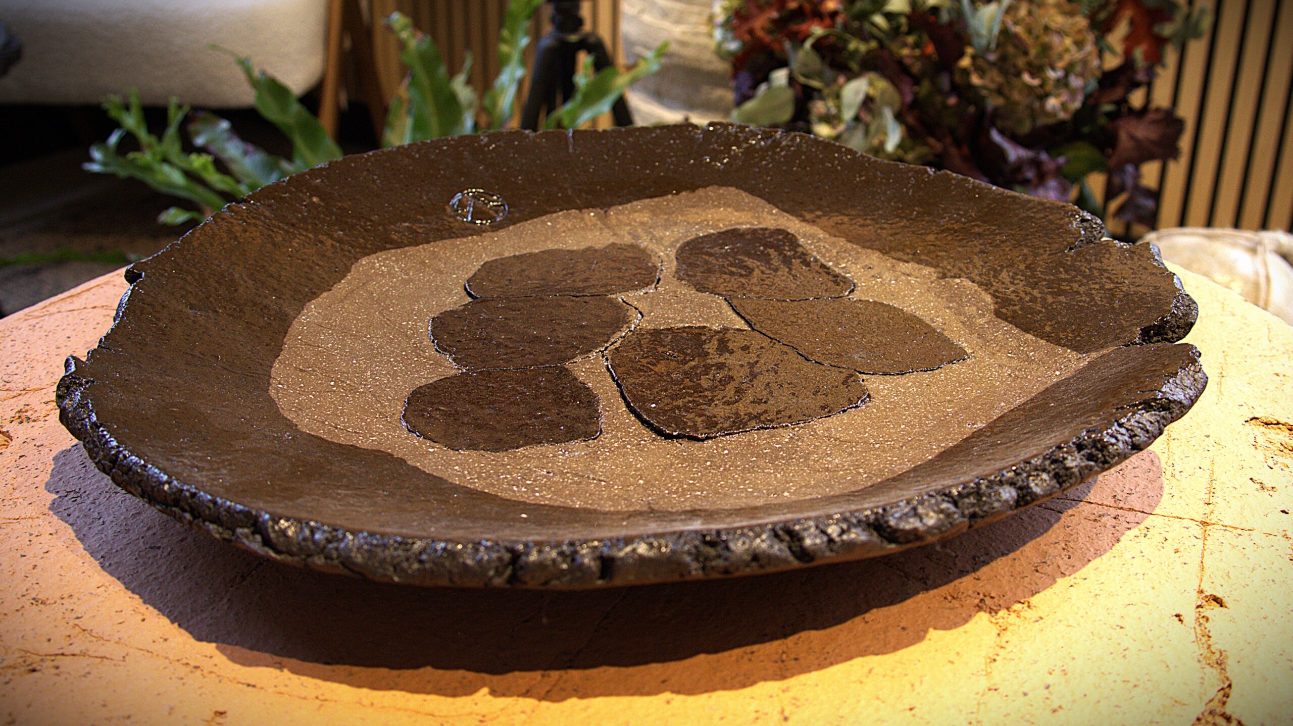 De rand is ruw en onregelmatig afgewerkt, typisch voor het wabi-sabi gevoel van de Primora-collectie: schoonheid in imperfectie, textuur en authenticiteit. De schaal voelt aan als een stukje gelaagde aarde , rustig, puur en sculpturaal.